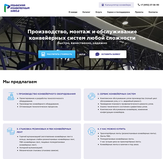 Компания Рязанский Конвейерный Завод создавалась изначально, как сервисная организация. Пройдя долгий путь изучения промышленного конвейерного (и не только) оборудования мы  собрали команду специалистов, которые моделируют, создают и производят монтаж конвейерных систем такого качества, что любой узел,  агрегат конвейера — легкодоступен, ремонтопригоден, и имеет высокий сервис фактор.
